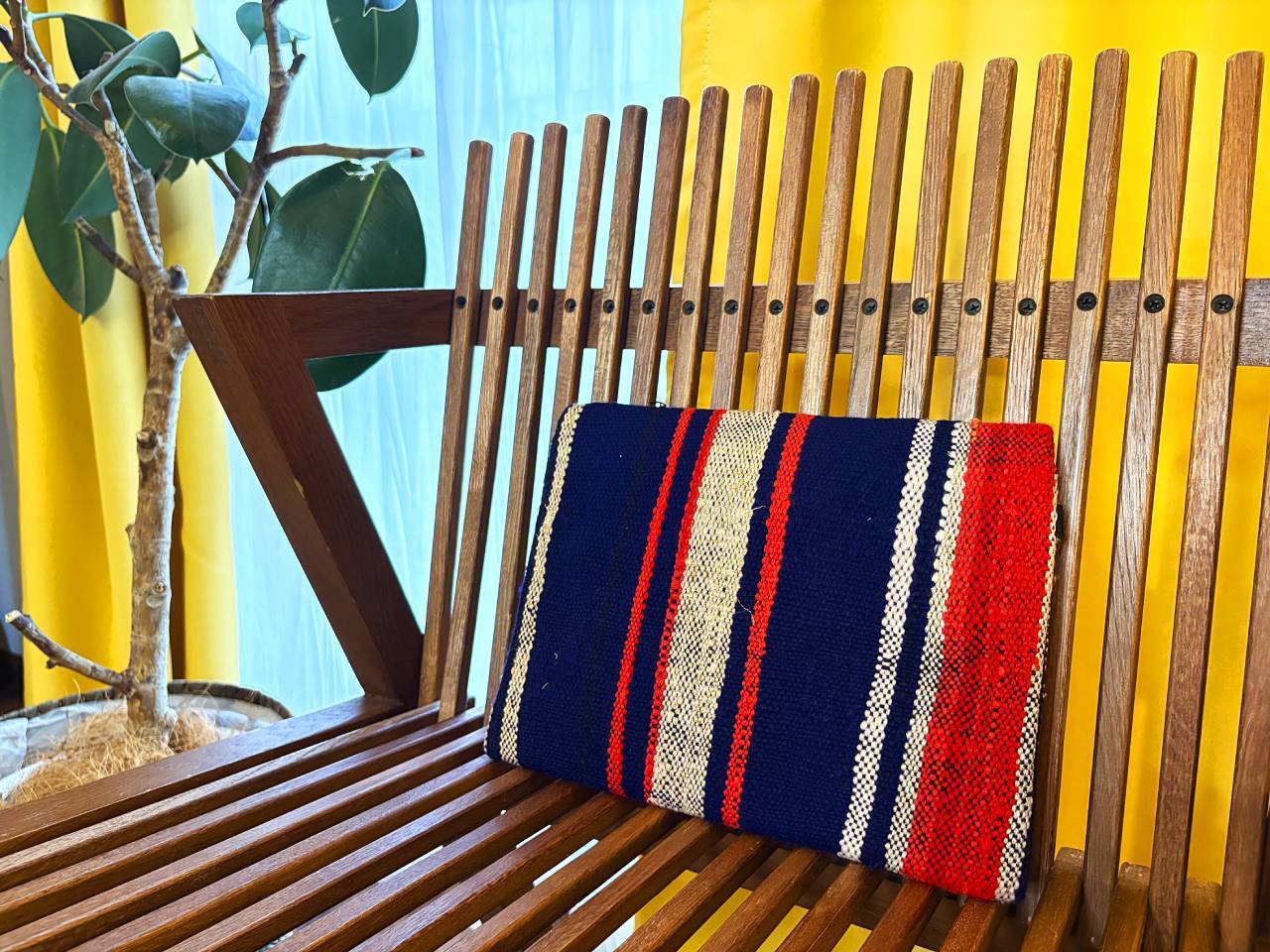 モロッコのヴィンテージラグや手織り布を再利用して作られた、世界に一つのクラッチバッグ。伝統の色柄がコーディネートのアクセントになります。