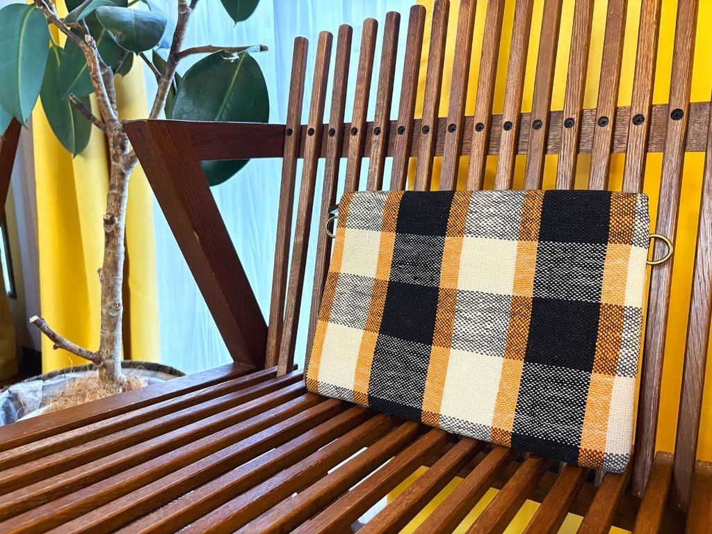 モロッコのヴィンテージラグや手織り布を再利用して作られた、世界に一つのクラッチバッグ。伝統の色柄がコーディネートのアクセントになります。