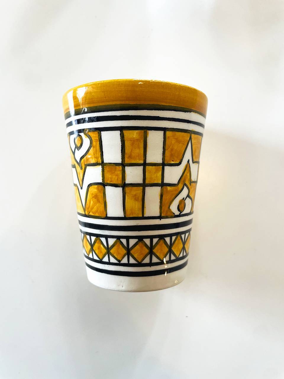 【モロッコ製】イエロー手描きカップ
